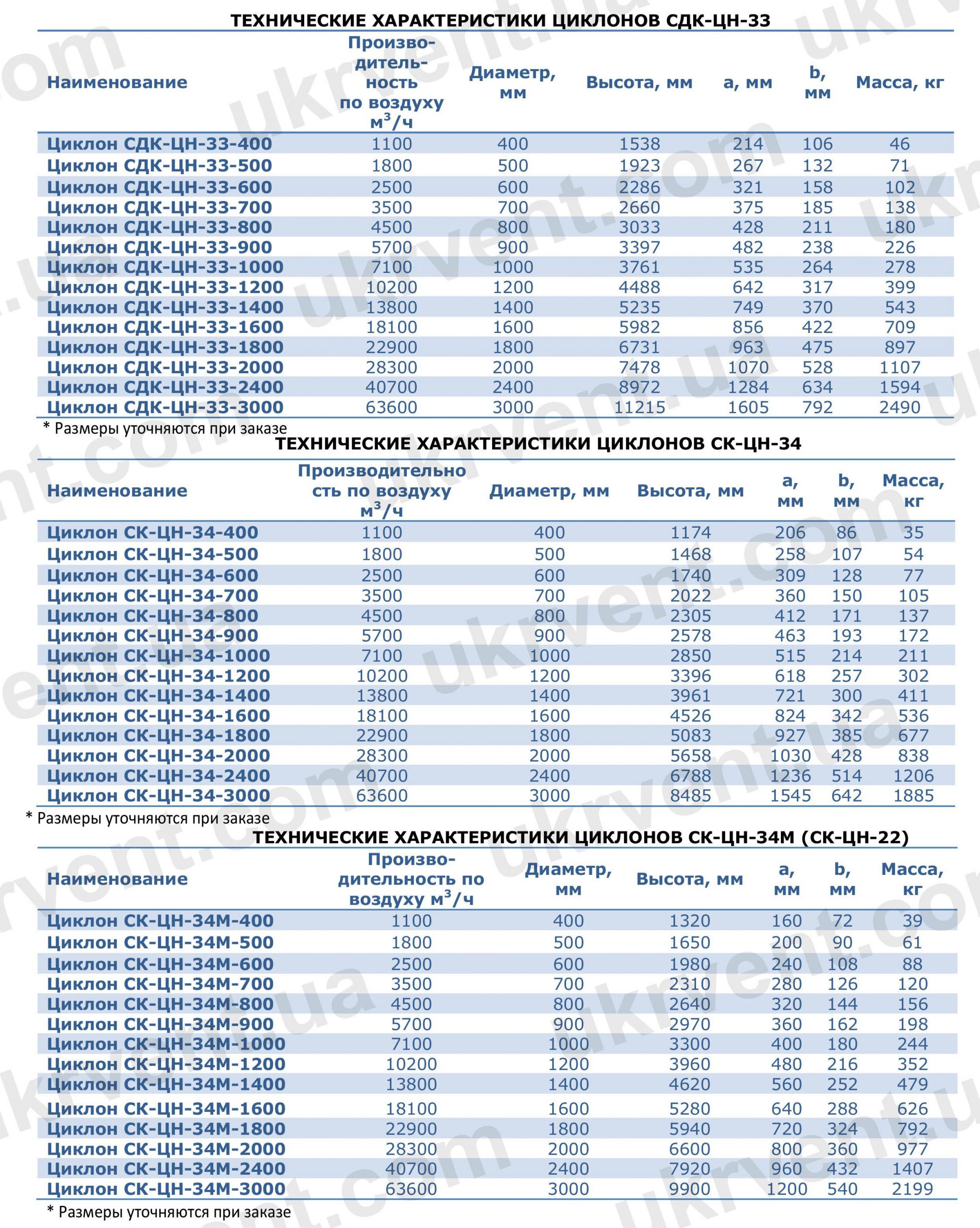 ТЕХНИЧЕСКИЕ ХАРАКТЕРИСТИКИ ЦИКЛОНОВ СДК-ЦН-33-3000